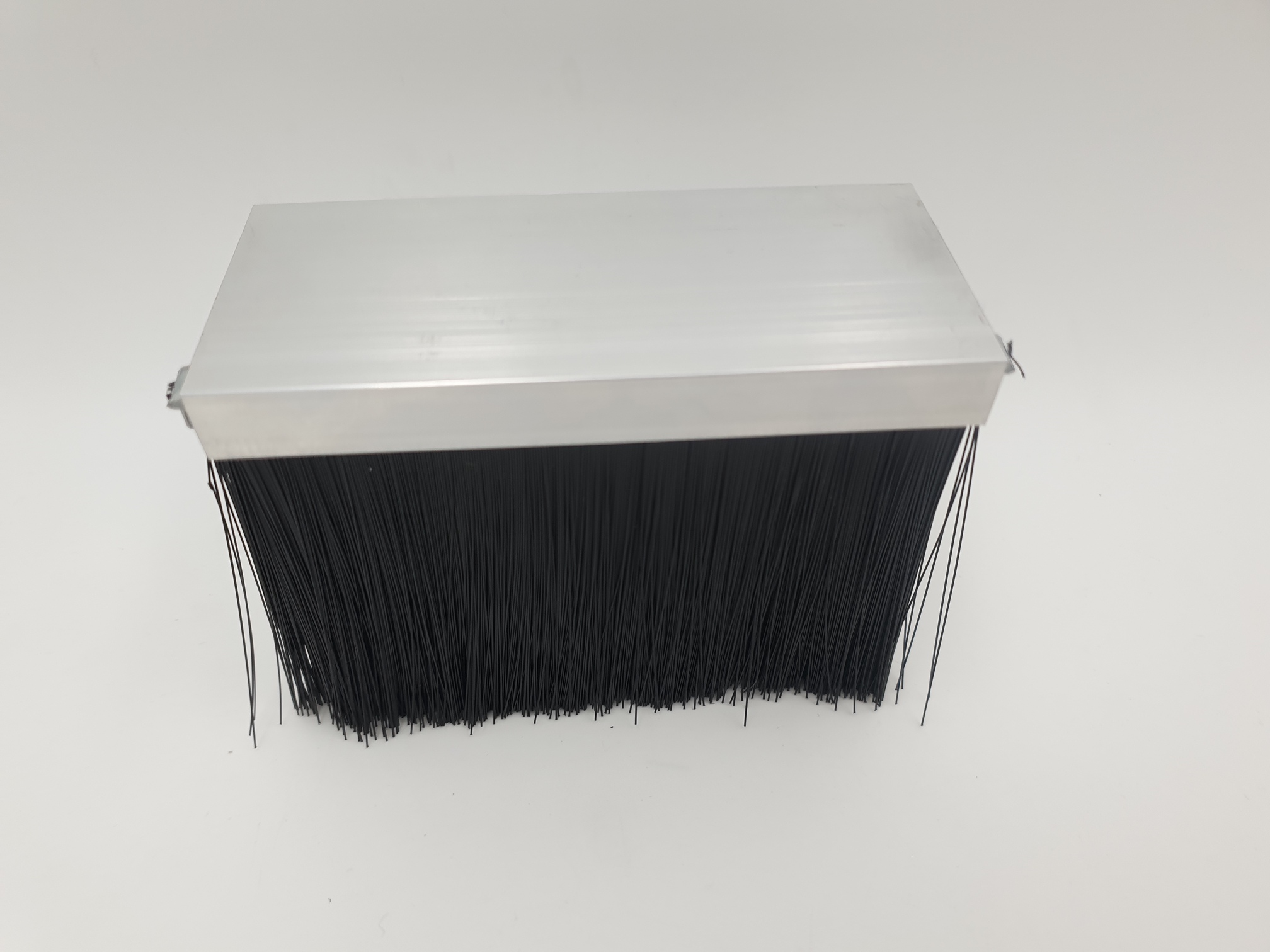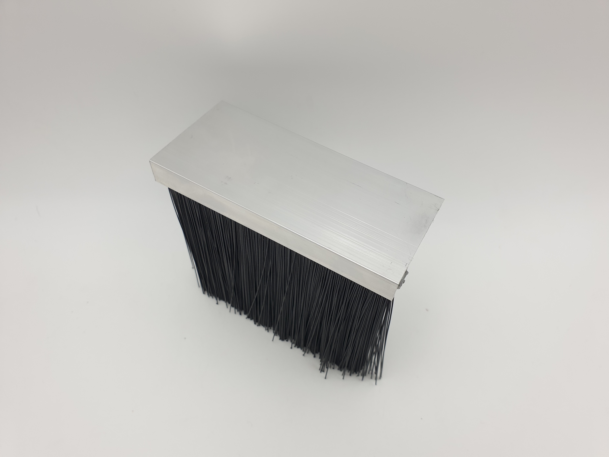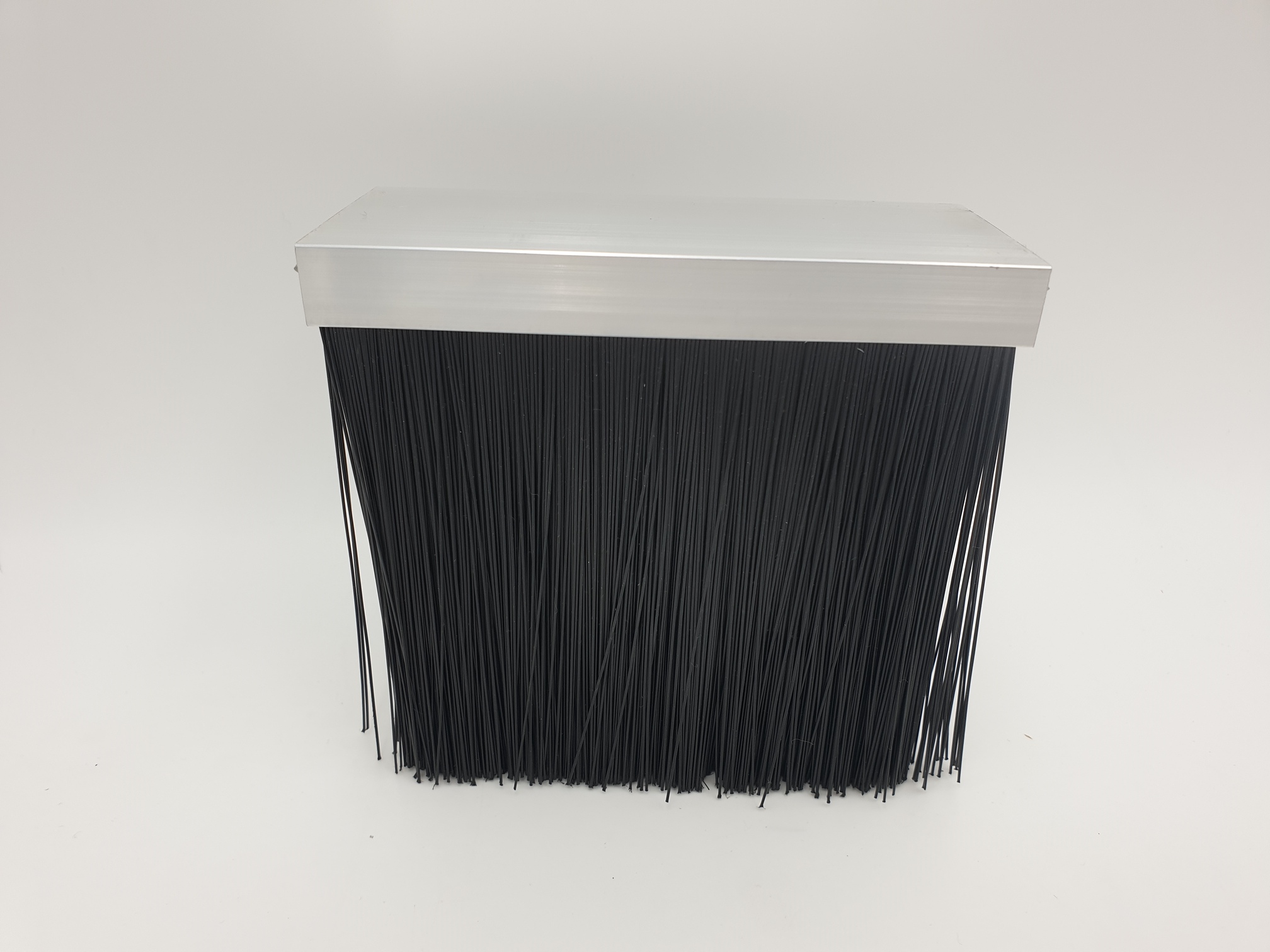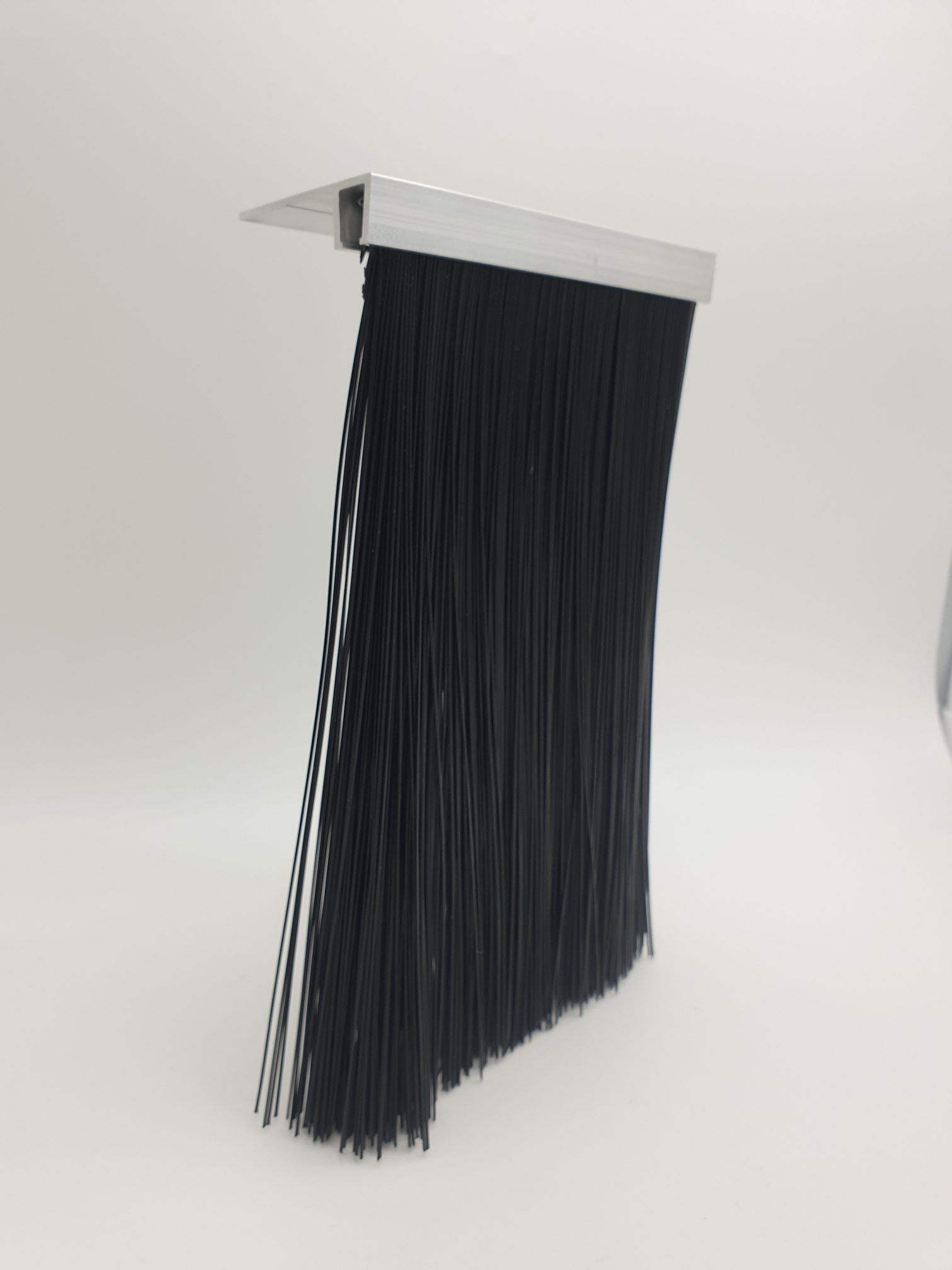 Conjunto de 2 piezas; perfil de aluminio ala largo 50mm + cepillo lomo acero galvanizado 8x8mm con fibra polipropileno negro liso con tratamiento anti-UV. Apto intemperie.