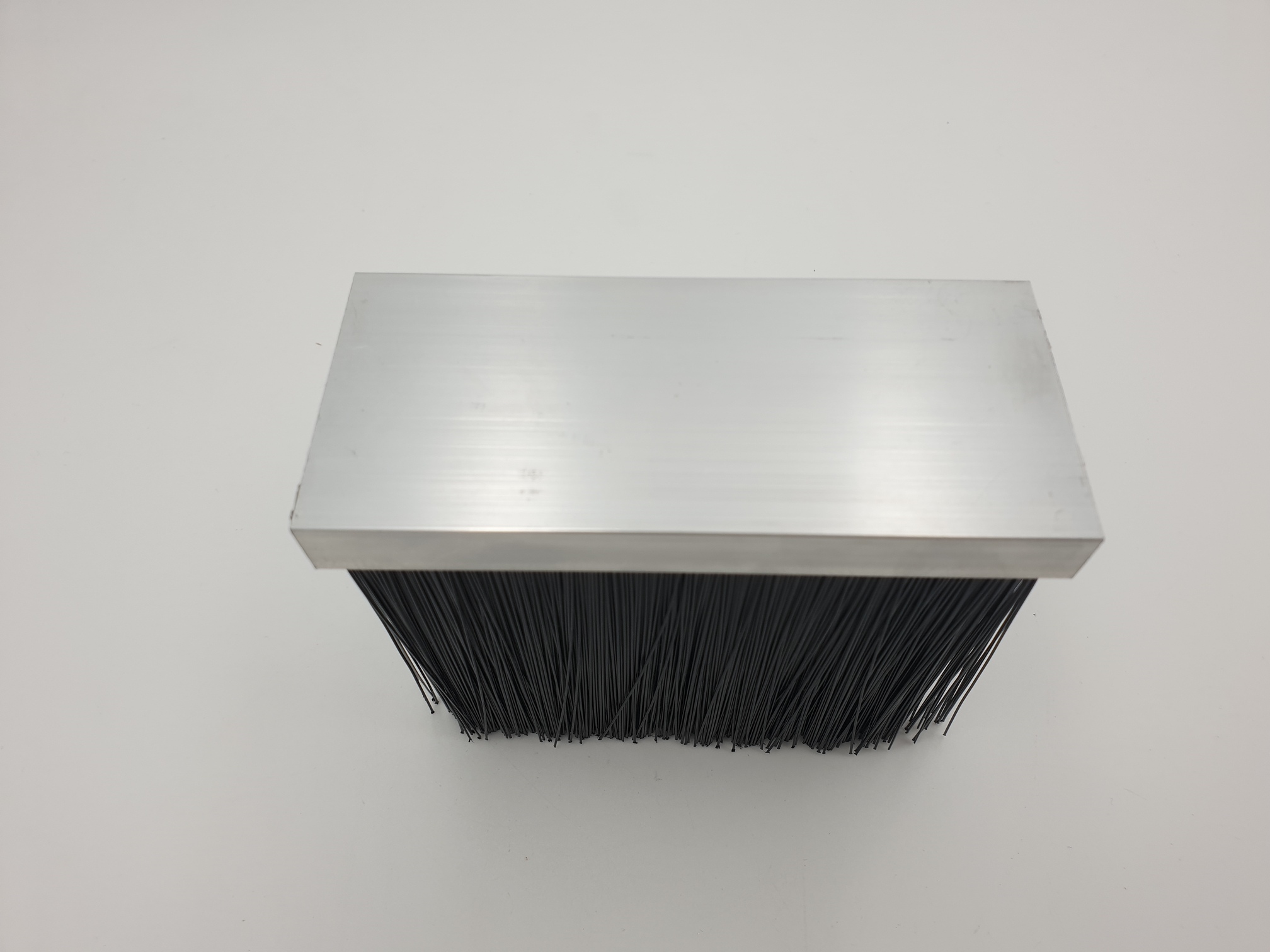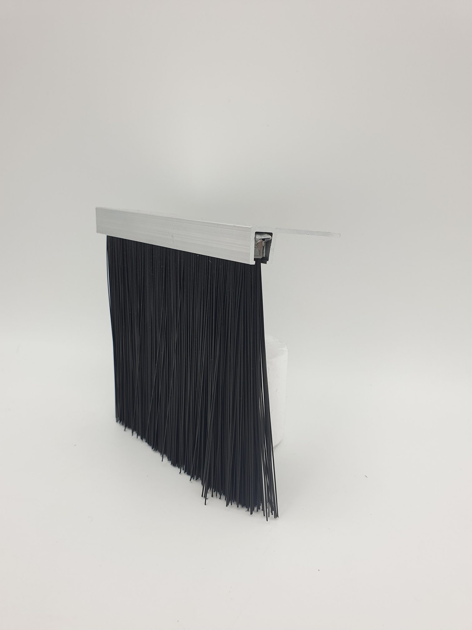 Conjunto compuesto de 2 piezas; Perfil de aluminio plata ala largo 50mm con riel para cepillo strip burlete lomo de acero galvanizado de 8x8mm con fibras flexibles, maleables y muy resistentes al desgaste y al calor (no se deshacen ni dejan restos como las gomas o cauchos)